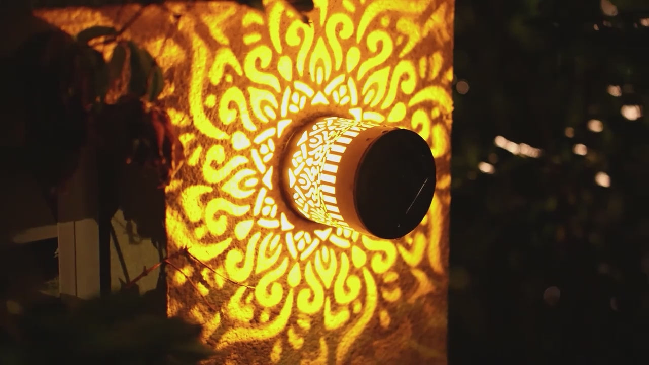 Solar-powered LED wall light with IP65 waterproof rating and automatic dusk-to-dawn operation. Provides warm, ambient outdoor lighting for gardens, yards, pathways and camping areas — durable, eco-friendly and easy to install without wiring.